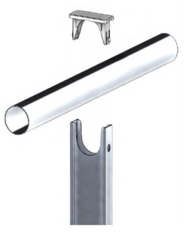 • Pasamanos y tubo intermedio entregados en paquetes de 7 y 5 unidades, montaje mediante extremos reducidos.