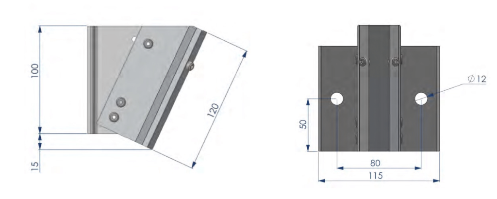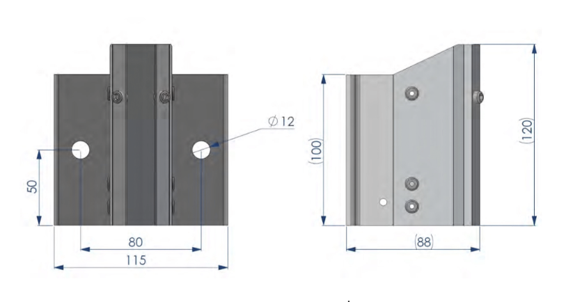 - Ángulo de rodapié fijación 2 tornillos espárrago M8x10