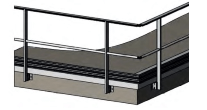 | MWOA-EXT-I4 | Barandilla M-SAFE con sistema de fijación a pared desplazado y montante recto, con pasamanos, dos tubos intermedios y rodapié |
